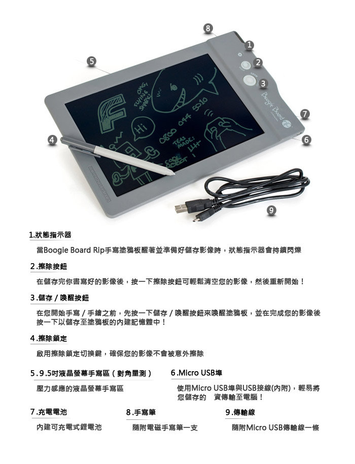 【Boogie Board手寫塗鴉板】RIP 9.5吋(可儲存) |