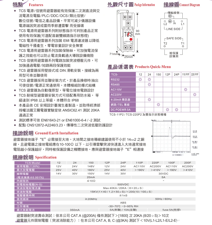 TCS高效能信號-電源用複合式避雷器