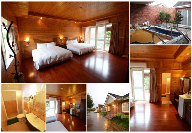 諾大的空間內有十二棟原木小木屋及半露天室內泡湯池,優質的溫泉加上舒適的山泉水SPA,讓您充分享受輕鬆愜意的悠閒時光。山莊內擁有寬闊的草坪、咖啡雅座、兒童遊樂區、賞花戲魚池等等,是一個休閒旅遊好去處。