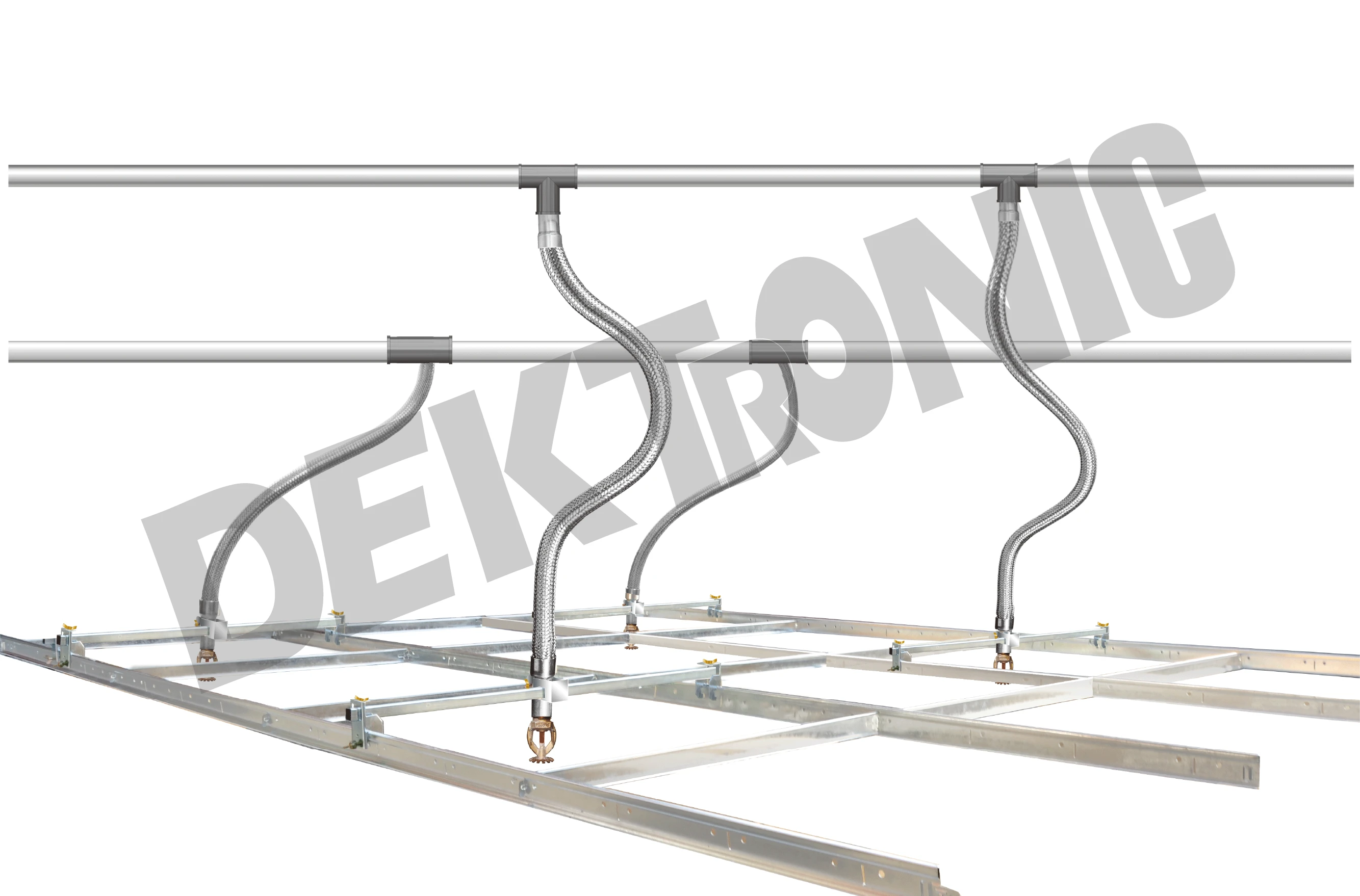 FM、消防署認證通過-安心的保證 包含無塵室、商業大樓、模組式排煙風管-消防撒水軟管系統,德克消防撒水軟管經過多項嚴格實驗測試,且通過FM及消防署認證,其產品品質與安全性均被有效控制與維持,符合保險公司相關需求,是一高品質且安全的消防產品。 擁有高耐壓性能與良好的可撓度 所有德克之消防軟管,不僅具有高耐壓特性及良好之可撓度,且為一無需在現場施銲的整體結構設計產品,允許於地震或結構晃動期間,有效吸收天花板與消防管線間所產生的位移。同時,因地震或配管偏位誤差所產生的管路應力殘存或洩漏之情形,亦可被有效避免。此外,其為一整體之結構規劃,無需因現場再施作時所產生塗裝或封膠等額外作業。