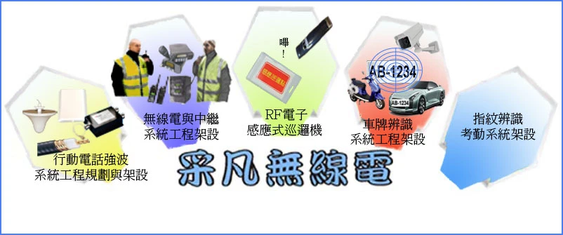 #無線電對講機#無線電中繼系統#電子式巡邏機#行動電話強波器#車牌辨識#智慧防闖監控系統