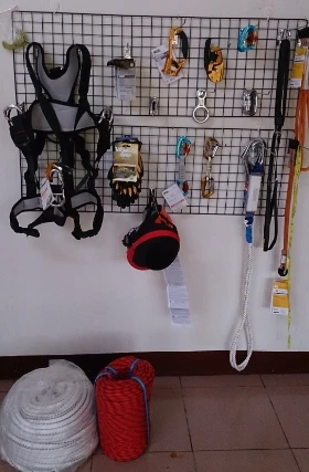 背負式安全帶.安全扣/防墜器.安全索.安全鞋.無線電通話器.鼓風機.三用電表.腹式上升器.手柄上昇器.下降器.安全帽.掛鎖.鉤鎖.D型鎖.坐式安全帶.大鉤.安全繩16mm.快掛.等...