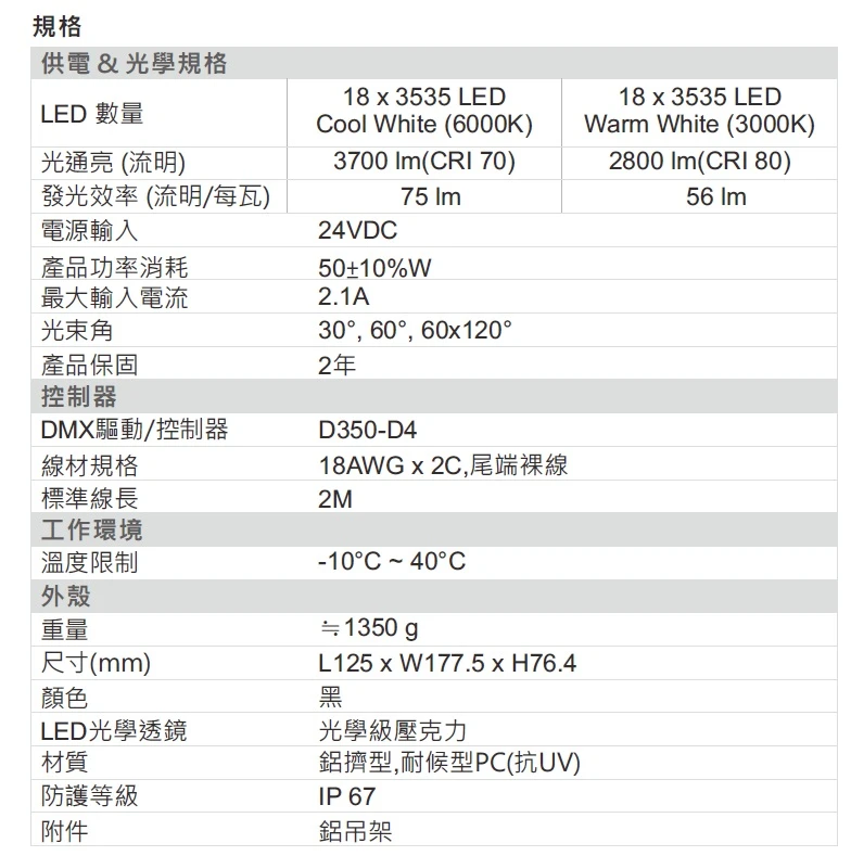 產品特色:1. 由高功率的3535 LED組成。2. 茂晶科技自有模具。3. 依據最佳散熱條件設計機構,達到體積小重量輕