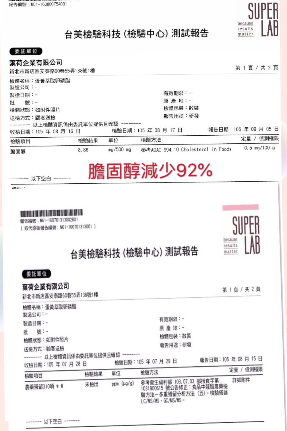 貴公司 老闆您好:這裡是葉荷企業公司,本公司從事蛋黃油卵磷脂專業萃取,卵磷脂產品研發.本公司經由SUPER LAB檢驗67.37%,屬業界高水準.希望有和各企業配合業務的機會 業務主任:周汶勇 0921-156-215