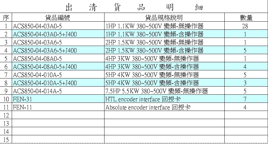 ABB 變頻器 ACS850系列產品、回授卡FEN-31、FEN-11清倉大拍賣 全新商品、庫存出清、數量僅此一批 低價出售、商品不含保固