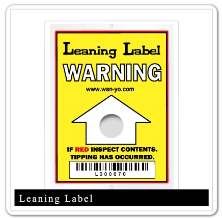Leaning Label 可以簡單地顯示出貨物在運輸及裝卸過程中是否曾經被傾斜、橫放或倒置。Leaning Label 可廣泛的用於運輸過程中貨物的監視,它們的存在,能使操作者更加小心翼翼的搬運或裝卸你的貨物。萬一意外發生,您就能方便快速的找到責任方,並擁有發生意外的最好證據。