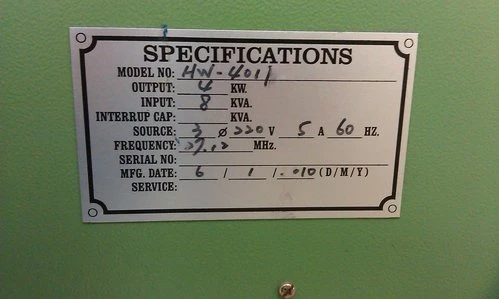 賀野高週波熔接機PVC或PET-G均可熔接。夏立客製化機械,中古印刷機械,中古網印機,移印機,燙金機,軋型機,烙印機,轉印機,熱壓機,及周邊用品買賣.