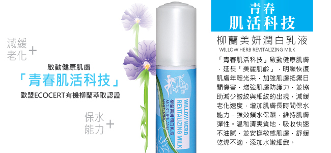 有機柳蘭萃取、玻尿酸、保濕因子、洋甘菊萃取液、維生素E