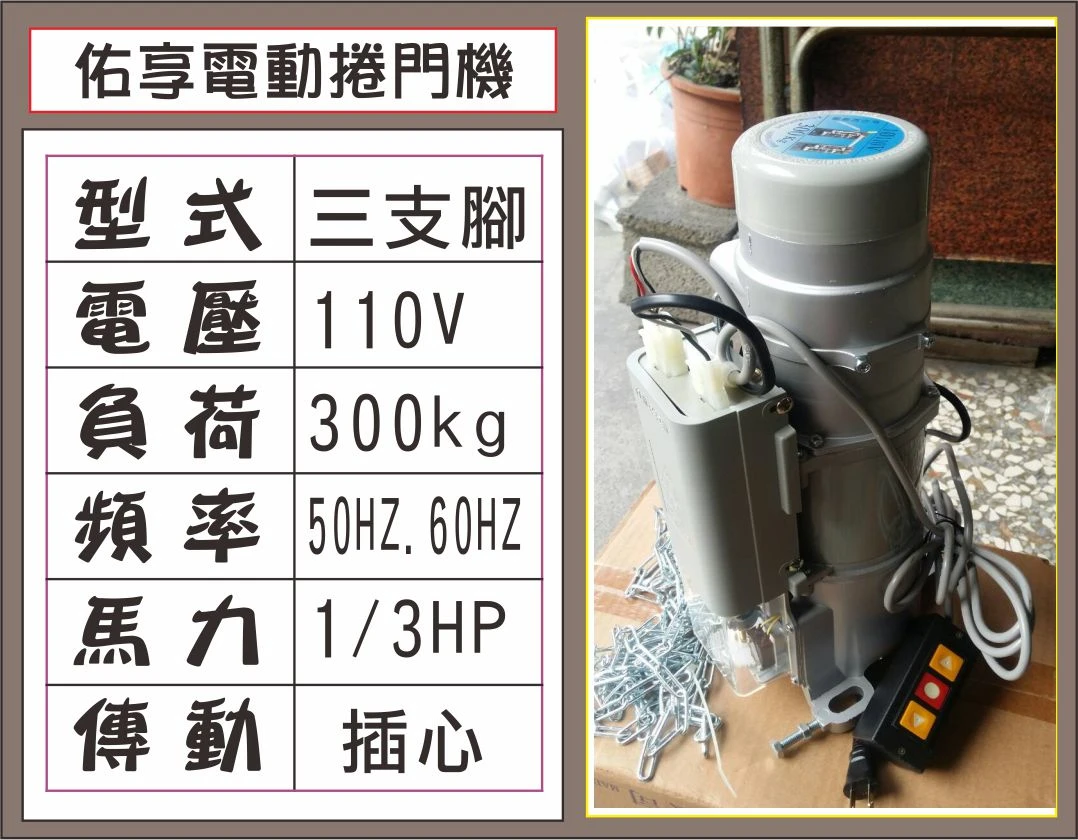 佑享電動捲門機 110V 三支腳 300kg