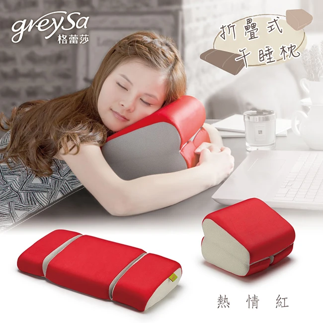 【GreySa格蕾莎】折疊式午睡枕 - 熱情紅