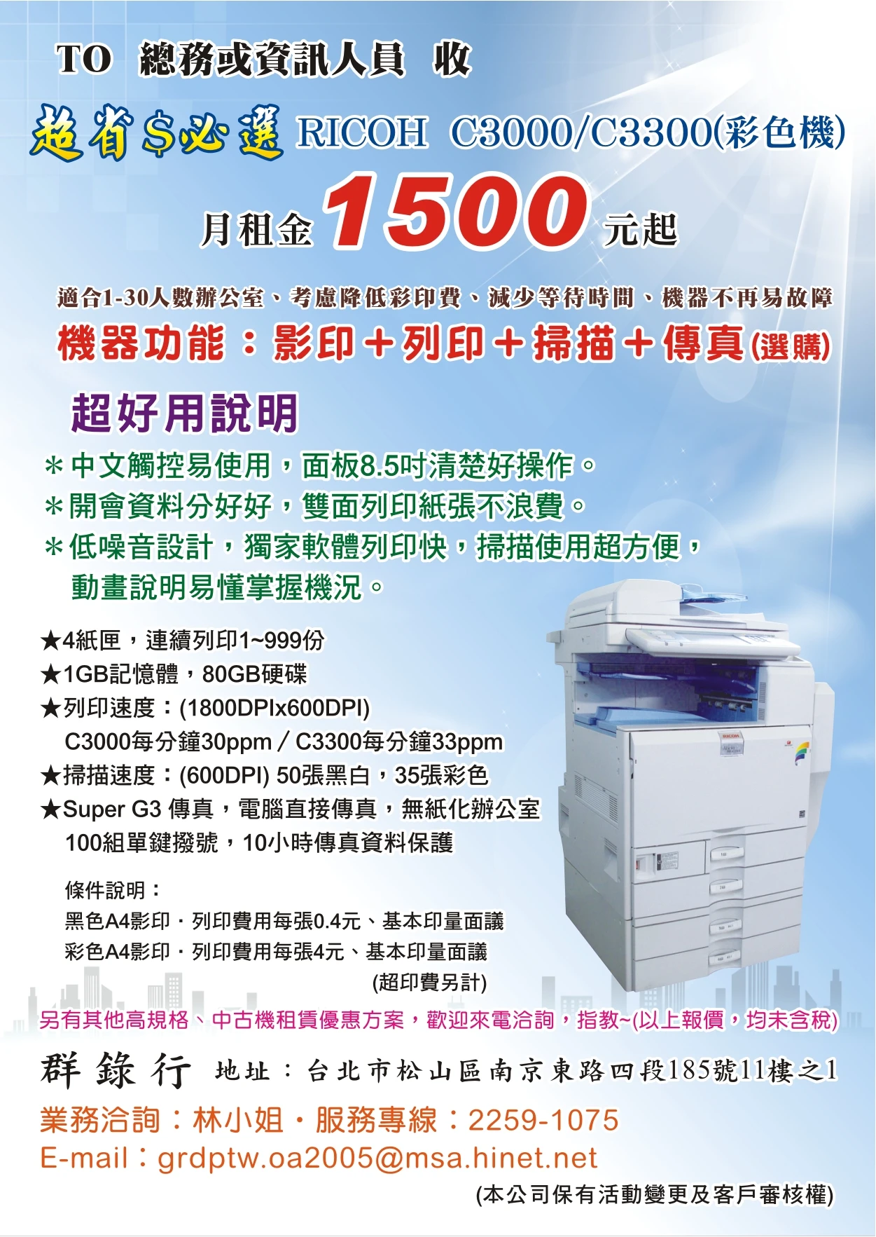 歡迎來電洽詢群錄企業社 2259-1075 林小姐