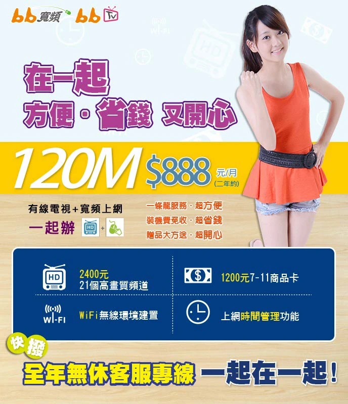 另有最低方案, 有線電視+bb寬頻 每天不到37元