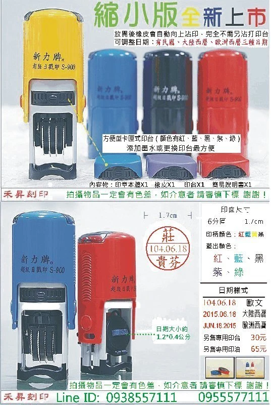 新力牌S-900..印面可製作1.5~1.8公分(圓形日期章)...