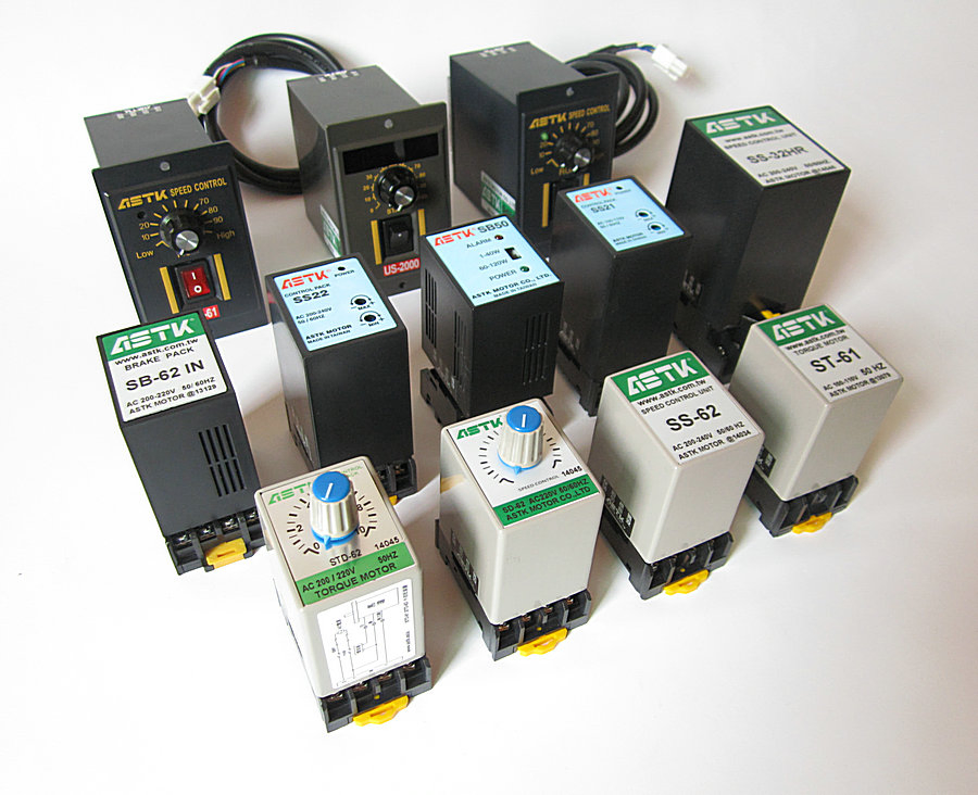 【分離型調速器】: 正,逆轉變速。起動,停止,運轉速度穩定。外接可變電阻調速。 (8 Pin接腳)操作簡便。分離型調速器一般是使用於電盤內控制。控制器本體會有標示配線圖,於電機與調速器腳座之間依配線圖配線完成後將調速器的本體插入腳座,準備就緒後起動開關,調整旋鈕即可調整電機運轉速度的快慢。電壓:單相110V/220V。可搭配各品牌的AC小馬達。