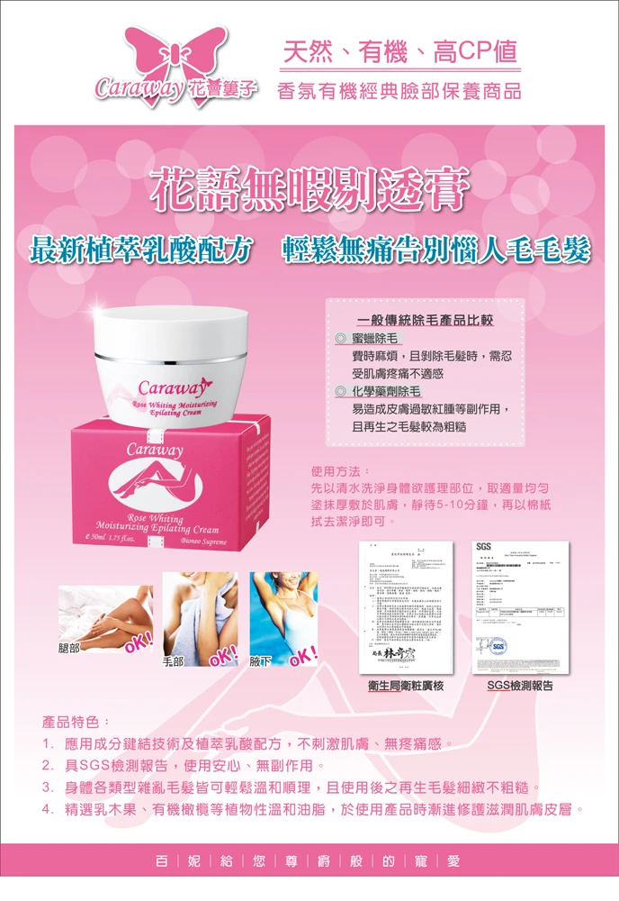 Caraway花薈簍子 花語無暇剔透膏 用途:溫和柔軟順理清潔毛髮,維持肌膚潔淨。脫毛膏腿部手部腋下可用