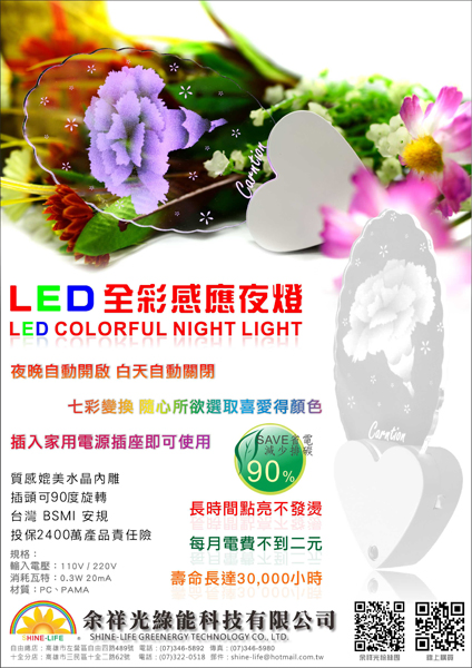 LED立體小夜燈與LED全彩感應夜燈為余祥光利基專利技術產品特殊光學設計 使圖案達到類3D效果 特殊技術專利 100%台灣製造