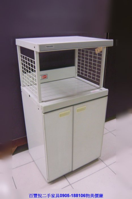 二手家具百豐悅-二手廚房置物電器架附插座 微波爐電器櫃 8成新狀況佳 碗盤收納櫥櫃 新竹湖口新豐家具電器到府收購