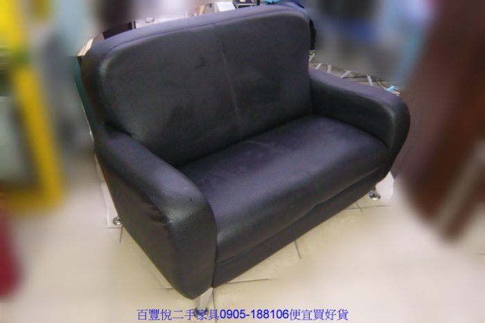 二手家具百豐悅-二手夜幕黑色皮面雙人沙發 2人皮沙發 兩人小沙發 套房沙發 乳膠皮沙發 新竹最優質家具 全省買賣運送