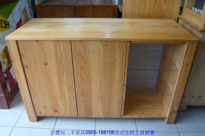 二手家具百豐悅-二手松木實木展示櫃有燈 訂製款全實木置物櫃 收納櫃 中島櫃 櫃台 產品架 展示架 新竹二手家具買賣最推薦