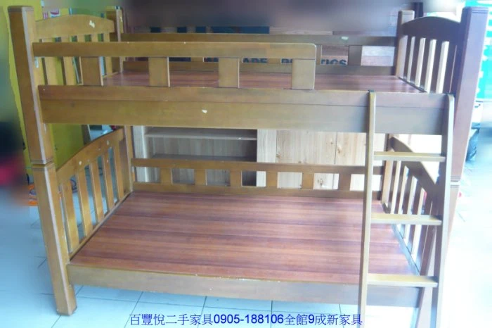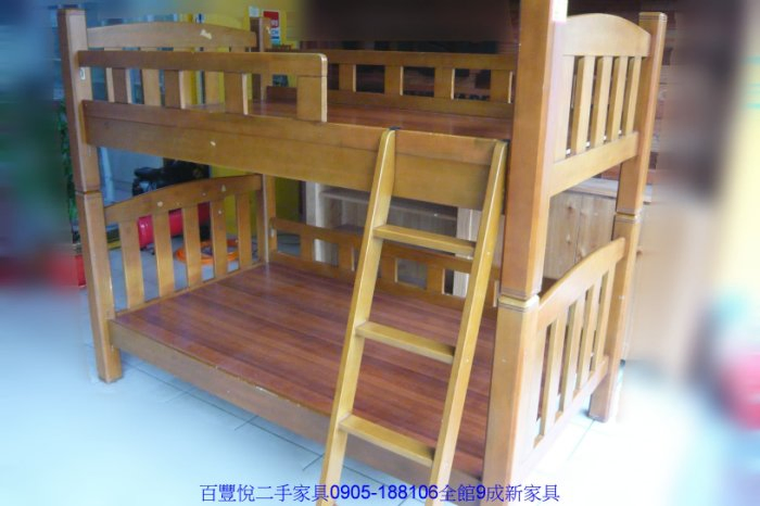 二手家具百豐悅-二手厚實粗木上下舖3.5尺 穩固不搖晃 三尺半上下舖 實木雙層床 新竹芎林橫山二手家具買賣 中古家電收購