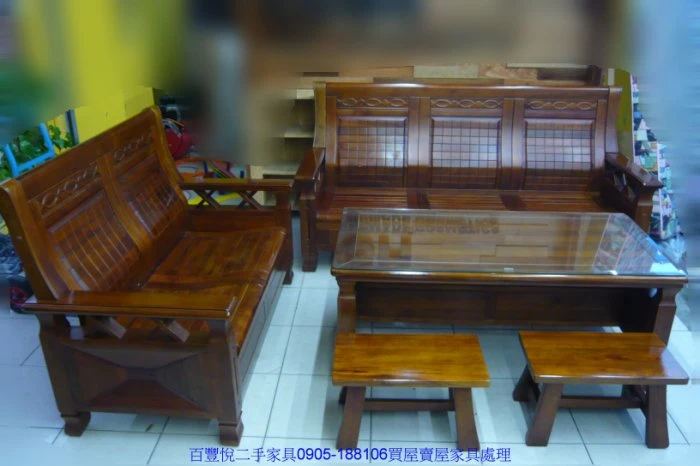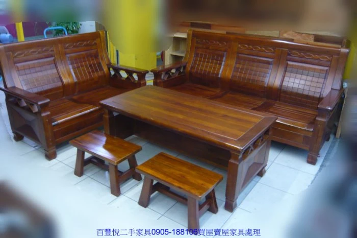 二手家具百豐悅-二手樟木實木組椅 全樟木2+3+大茶几 椅座