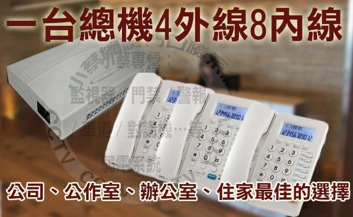 █TC308AC可接 3條外線,8條內線,門鈴對講機,電話控制鎖,是功能強大,價格低廉的電話語音總機,適合中小型企業提昇公司形象,SOHO族,透天別墅,住家,旅館,KTV,或包廂等使用。