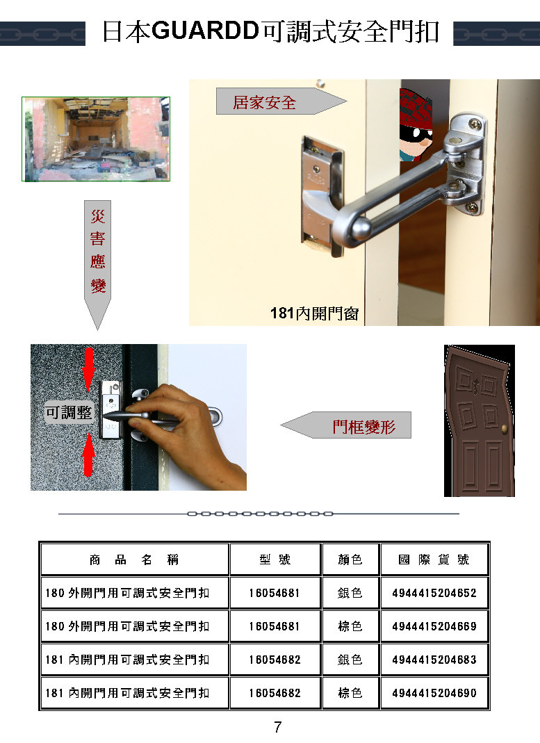 日本GUARD可調安全門扣 181(內開門) 專利