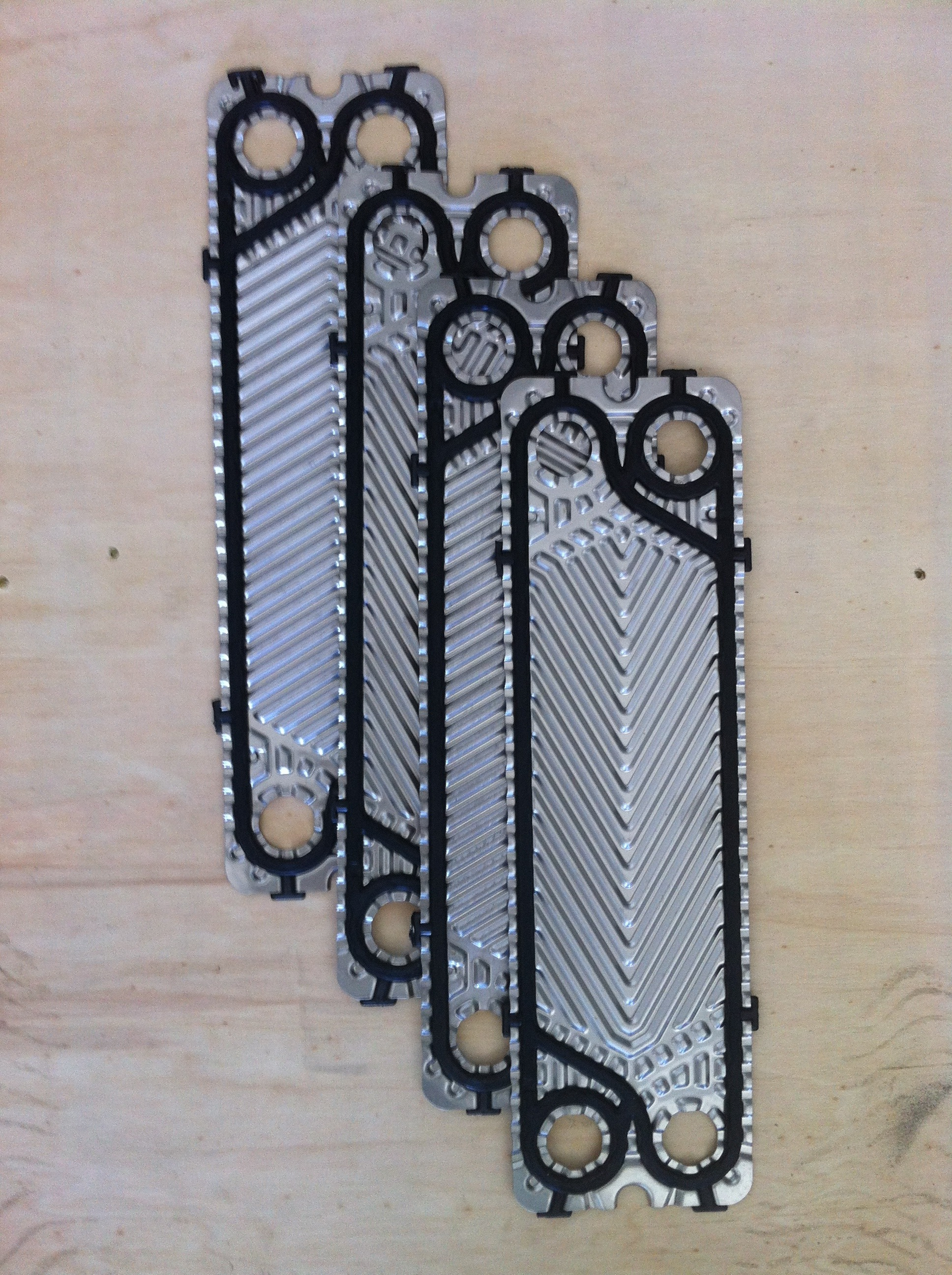 組合式熱交換器所使用的襯墊必須能適應流體的化學性質並且密合於板片之間,確保流體不會測漏或互通。同時嵌入式的襯墊便於安裝與拆除替換。