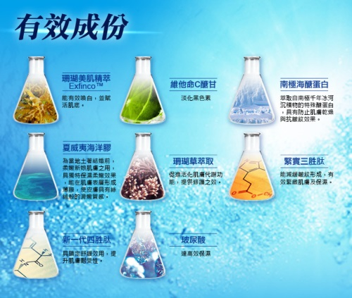 軟珊瑚精粹Exfinco™,能有效喚白,並賦活肌底。