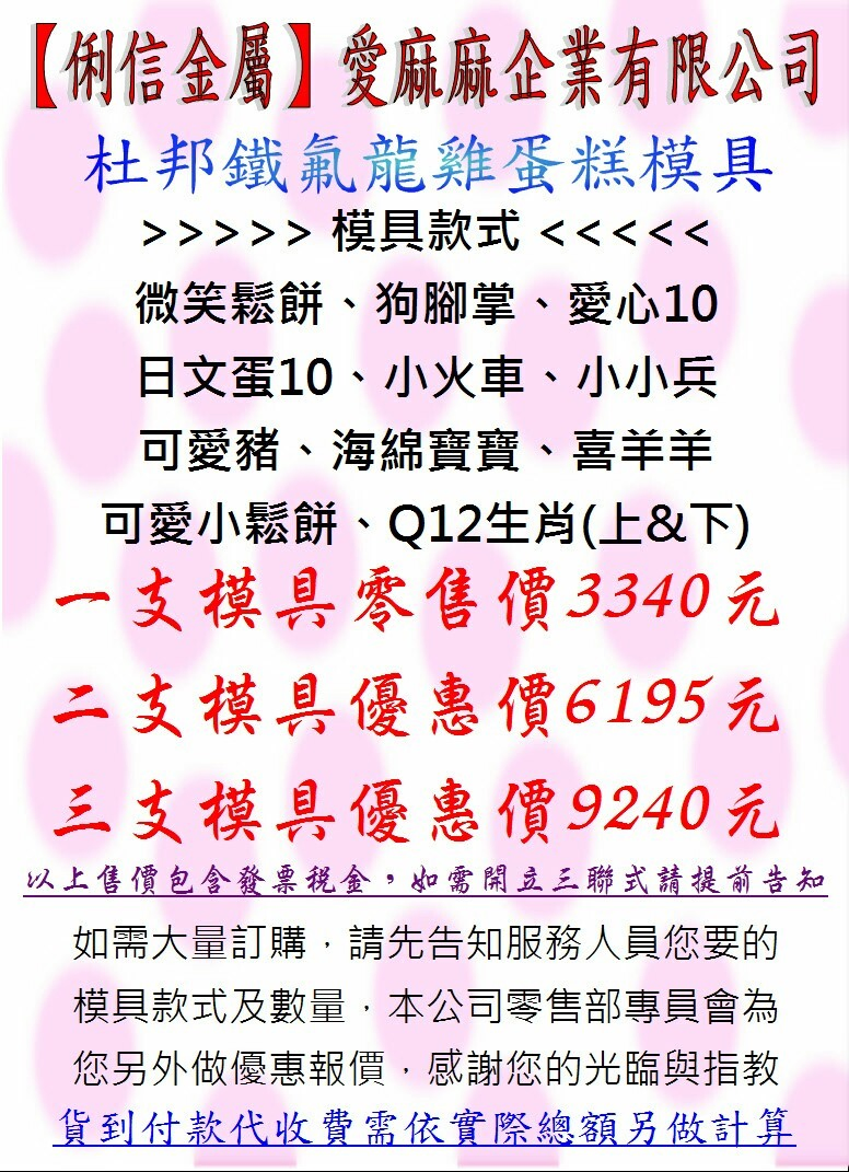 俐信金屬工業有限公司:鐵氟龍特A奈米級雞蛋糕模具
