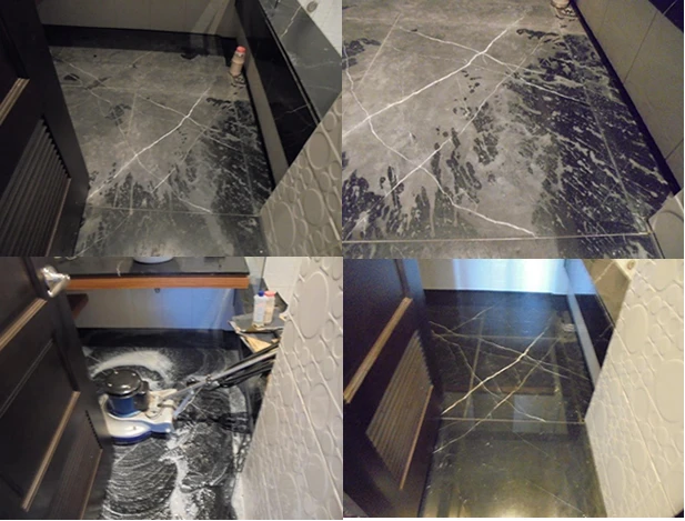 那要添加多少量比例才是正確的呢?如果要清洗浴室大理石水垢,最好使用噴瓶先倒入水200cc再加入檸檬酸約1公克,再加入少許洗潔劑或沙拉脫,噴於石材表面刷洗時間不能太久,以3分鐘為恰當,乾快以清水沖淨再擦掉,大理石既怕酸也會滲透破壞表面。 傷到的地方用研磨方式是可以救回來的,只要有經驗的師傅使用研磨機在上面磨幾下,再做拋光防護就可以讓受損的石材變新的 像這樣經過研磨、晶化、拋光三道手續就能拋得很亮了,比新的還要新呢~~以後保養可用沙拉脫洗過、沖過、擦掉水漬就會很亮、很安全的