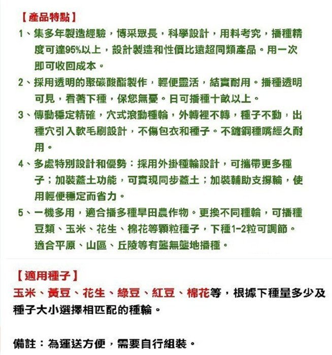 ~【產品特點】 手機號0933322949 黃 先生1.集多年製造經驗,博採眾長,科學設計,用料考究,播種精度可達95%