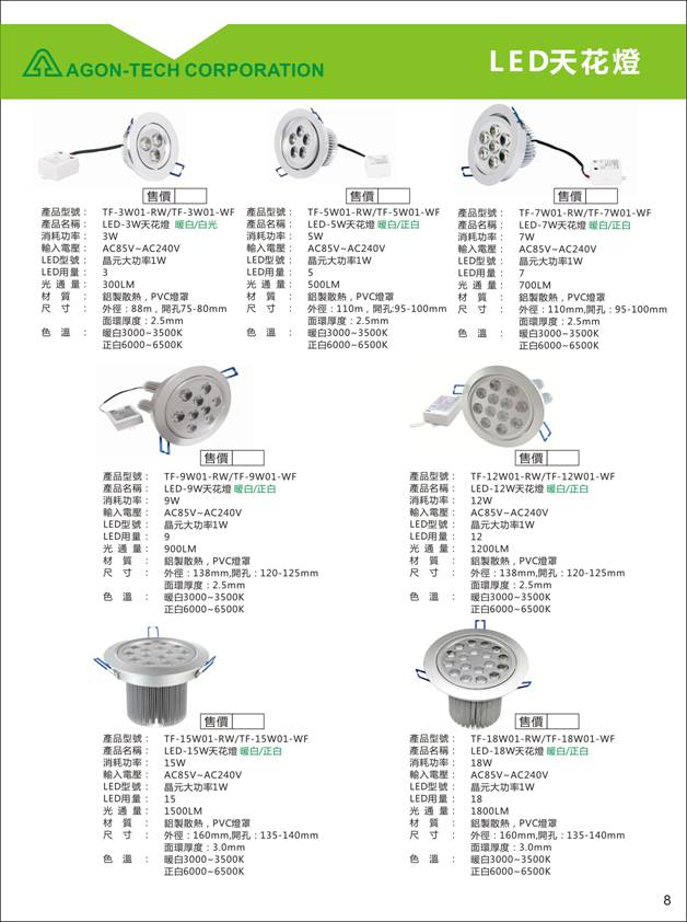 群祺光電產品LED天花燈規格表~~如以下圖檔