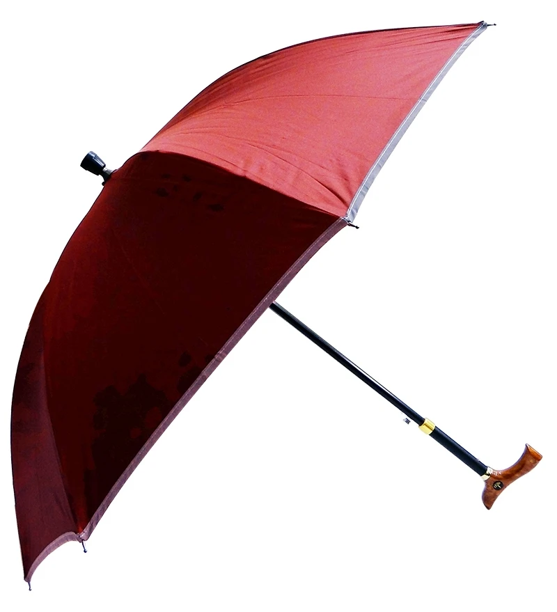 調整式自動手杖傘添增水轉印的木質感握把,提升自我品味,除此之外更是通過CNS認證,讓您用的安心,子女更為放心