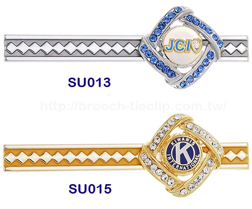 領帶夾製作說明:領帶夾SU013 ∕ SU015用進口高級亮面銅沖壓製成,青商會及同濟會LOGO採用軟琺瑯的高級作法,LOGO圖案您可自行設計翔聆幫您開模訂製更換,翔聆的領夾製作皆經粗拋光,細研磨,細拋光等拋光過程,領夾凹下底部霧金凸起部分亮面雙色處理,再經過飾品高級電鍍金或白K確保領夾訂製的品質,加上施華洛世奇系列飾品專用奧地利製奧登水鑽,領帶夾SU013 ∕ SU015就是亮麗又受歡迎實用的贈品及紀念品