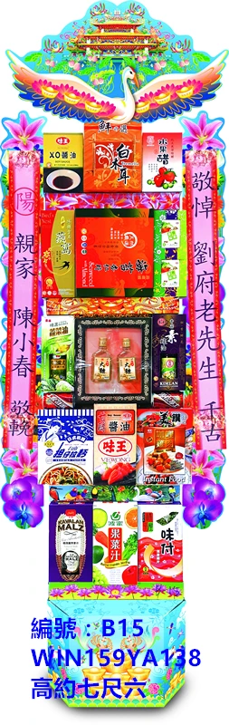 喜慶、致喪訂做平實精緻的壽桃麵塔、龍柱、麵線猪羊、香塔及罐頭