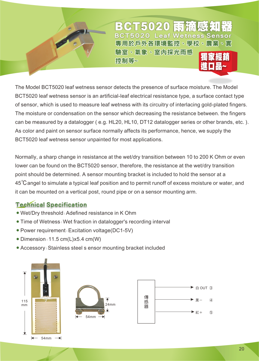 BCT5020 雨滴感知專用於戶外各環境監控、學校、農業、實驗室、氣象等