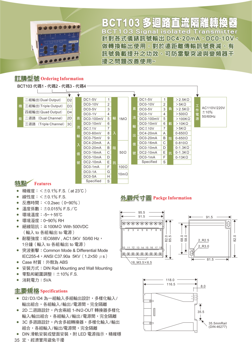 BCT103多迴路直流隔離轉換器BCT103 DC Isolation Transmitter針對各式儀表訊號針對各式儀