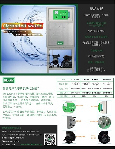 大流量工業臭氧水機 最佳的低溫清洗劑 .臭氧水輸出可調 0.3-5 ppm臭氧水