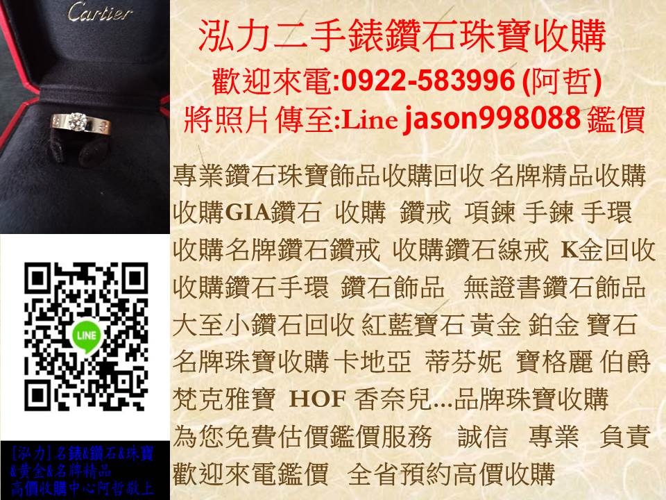 全省高價收購專線:0922583996 阿哲 泓力二手錶鑽石珠寶收購