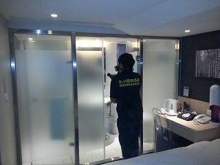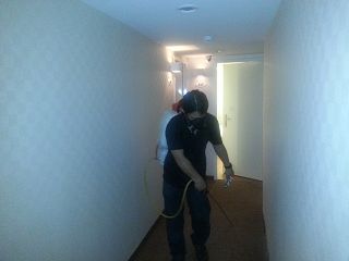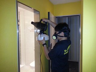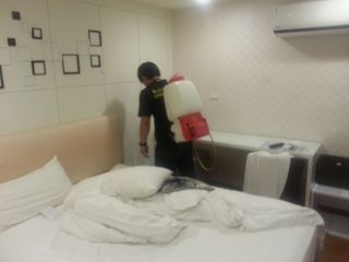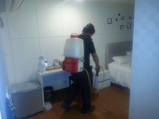 針對客房內蟑螂角落使用噴霧機噴灑無味藥劑 |