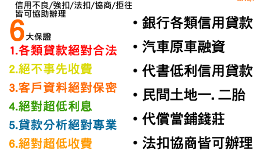拒絕收取高額服務費!   軍公教.特殊職業.法扣.協商專案 皆可輕鬆貸!!