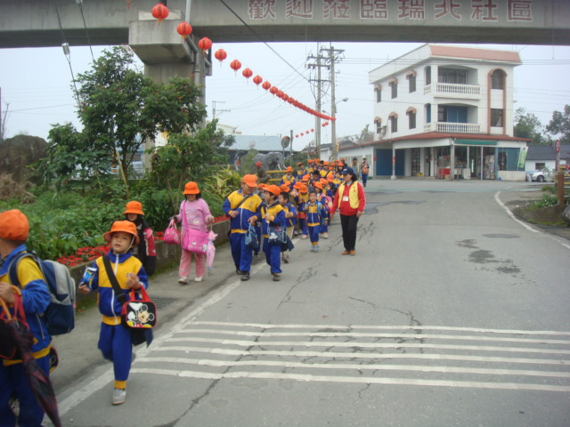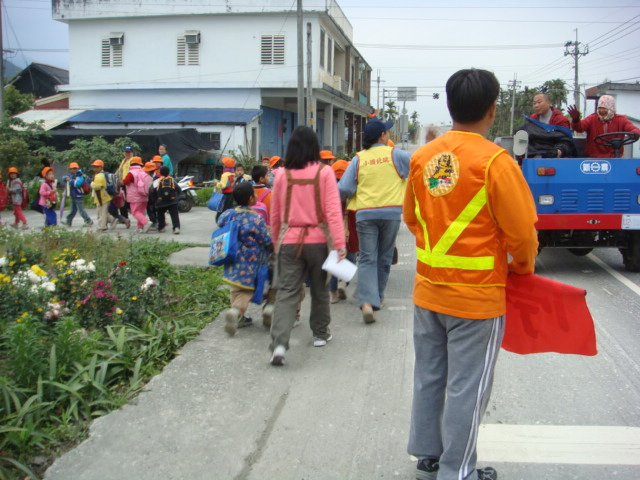 因瑞北國小位於台九線上 來往的車子車速都很快 所以安排上工人員協助瑞北國小接送小朋友上下課