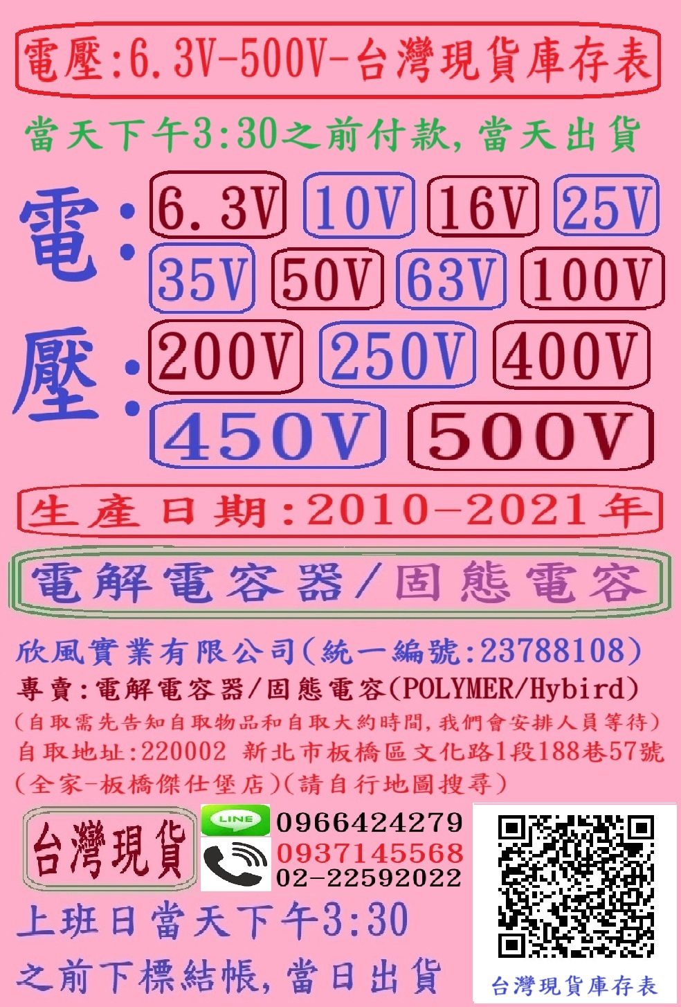 電壓:6.3V-500V-台灣/日本/上海庫存表(生產日期: