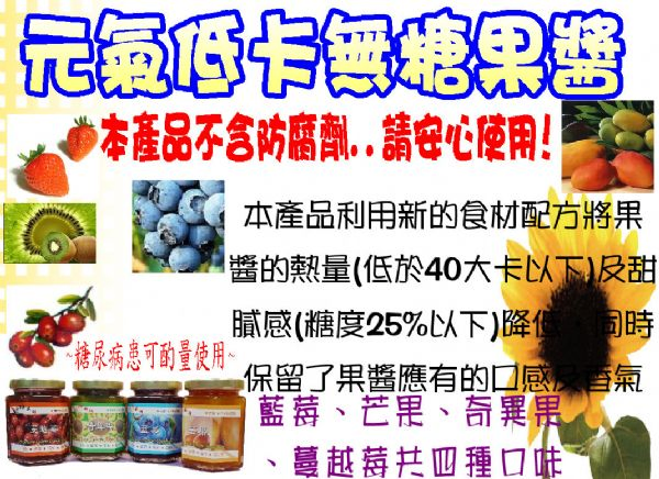 元氣低卡無糖果醬來了! 怕胖的人,有福了。 您還在吃市面上含有防腐劑的果醬嗎? 讓我告訴您如何吃出健康、吃出美麗。 饕客團員熱力招募中, 歡迎加入我們美食搶鮮族!