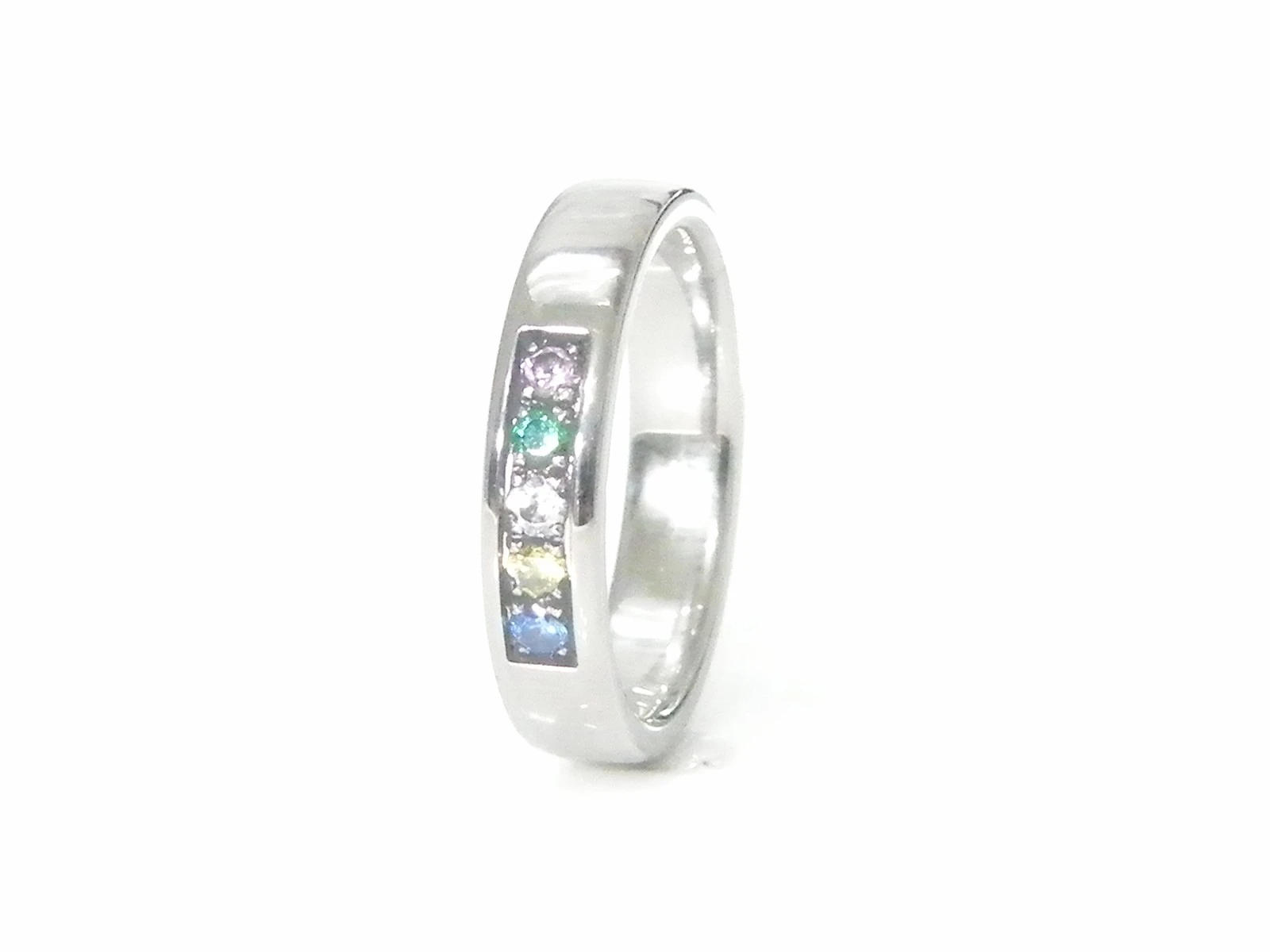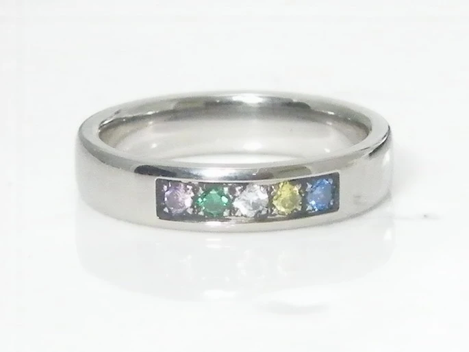 純鈦戒指- 繽紛春天的繽紛色彩象徵希望與歡樂精鑲5種不同色彩