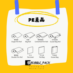 PE袋:耐用、防潮,適用於一般包裝、物流、工業用途,提供多種尺寸與厚度選擇。