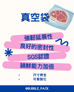 真空袋:高阻隔性材質,適合食品保鮮、冷凍保存,延長產品保存期限。