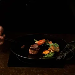 餐廳主打食材以日本頂級食材與每日新鮮直送海鮮為核心。招牌料理包含頂級A5和牛料理、A5和牛鐵板燒、鮮活龍蝦鐵板燒、鮑魚鐵板燒以及各式活體海鮮料理。尤其是備受饕客推崇的和牛鐵板料理與台北A5和牛料理,選用日本頂級A5和牛,油花細緻、入口即化,透過鐵板高溫瞬間鎖住肉汁,呈現極致風味,也成為許多美食愛好者尋找台北和牛鐵板燒時的首選。