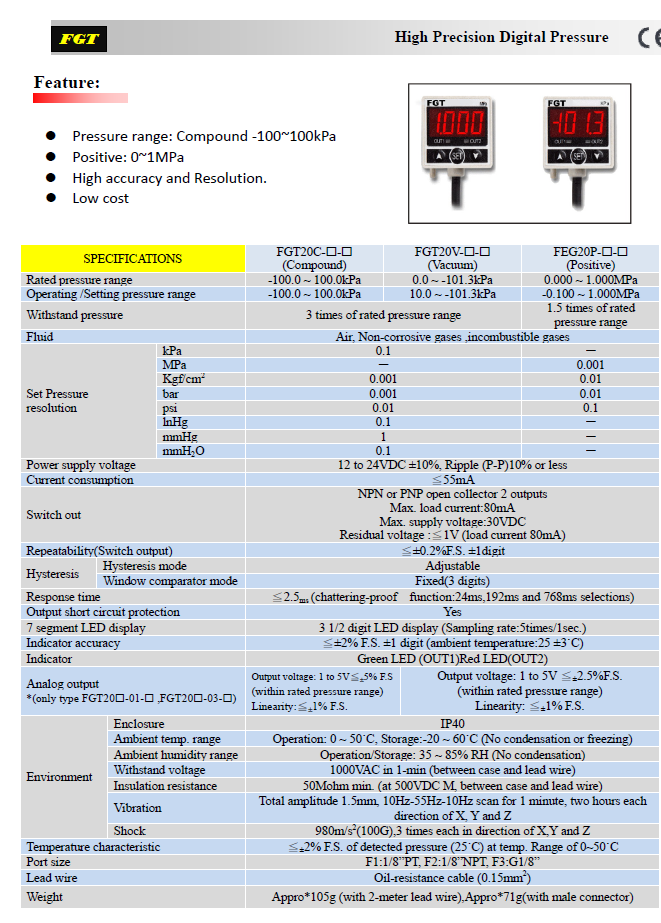 第一通用(First General Technology Inc.)在七月推出FGT壓力開關,本產品為FGT自製品牌,經過歐洲CE認證,價錢公道 希望是您最好的選擇現在訂購有特案價 FG